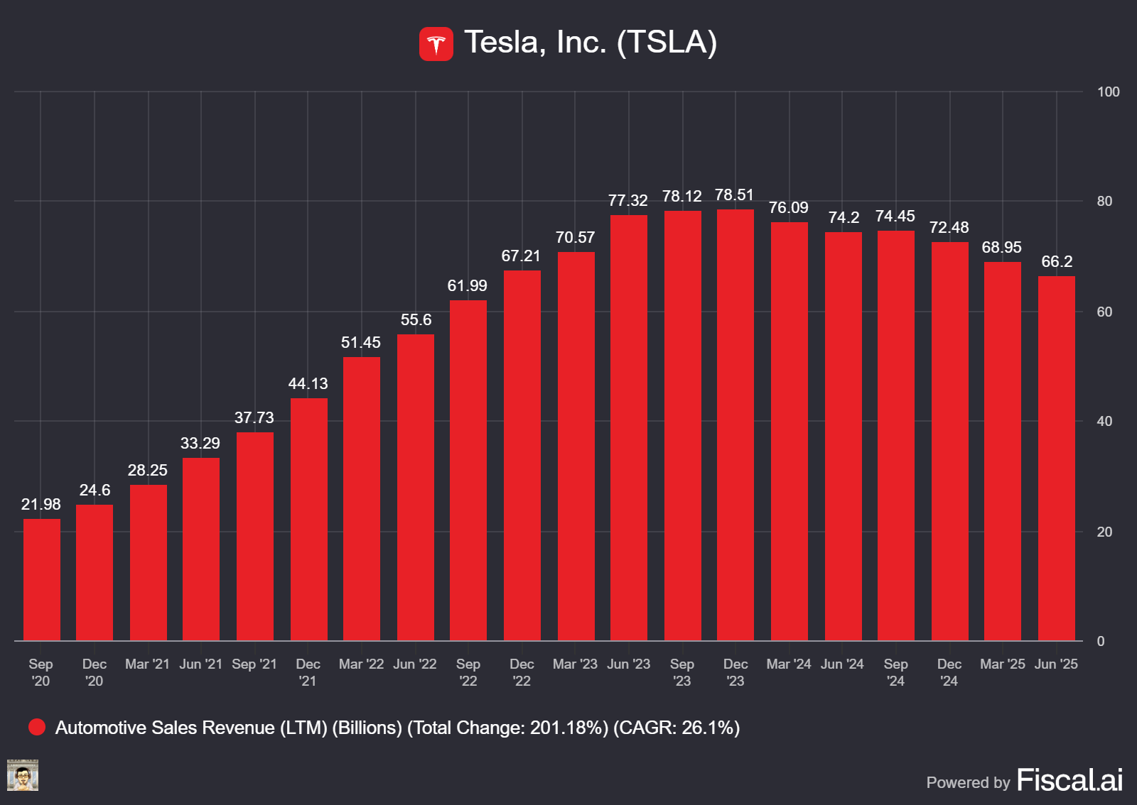 💸 Financial pressure. Automotive revenue slid to $16.7 billion on lower ASPs; free cash flow shrank to $146 million as Tesla plowed cash into AI and robotics CapEx that will exceed $9 billion this year.