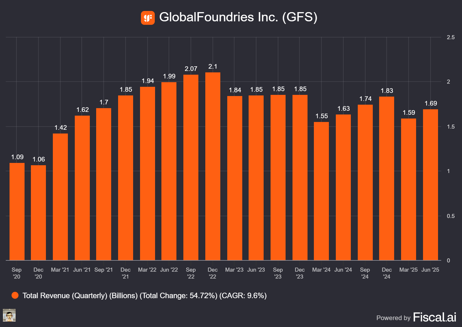 🧮 Margins & CapEx discipline. Targeting 30% gross margin from ~25% via richer mix and higher fab utilization (“low 80s” in 1H). GF invested $7B in capacity in prior years; now it’s in CapEx‑light mode for 2025, with a potential uptick late 2026. Priority: build “within the four walls”—Fab 8.2 (Malta) supported by the CHIPS Act, unutilized BTF capacity in Dresden, and options in Singapore—before any greenfield spend. Hollister also cited a “maniacal focus” on input costs.