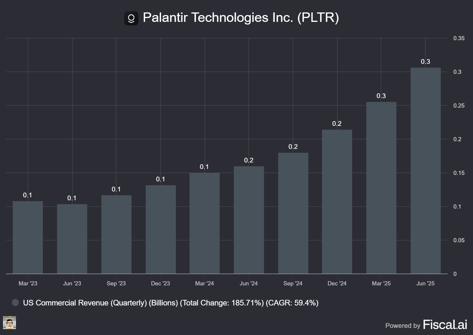 🟢 Revenue engine firing: U.S. commercial sales soared 93 % YoY (20 % QoQ) to $306 M, while U.S. government climbed 53 % YoY to $426 M; America now accounts for 73 % of total revenue.